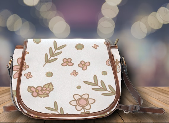 Rose and flowers cute Vegan leather saddle bag, Mothers day gift, gift for her, crossed body purse women, hippies boho gift, rose purse