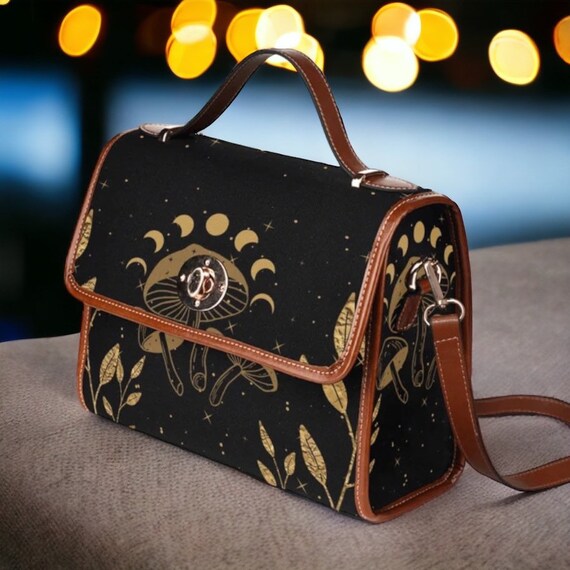 Cottagecore witch Canvas Satchel bag, Cute women crossed body purse, cute vegan leather strap hand bag goth bag, hippies boho gift