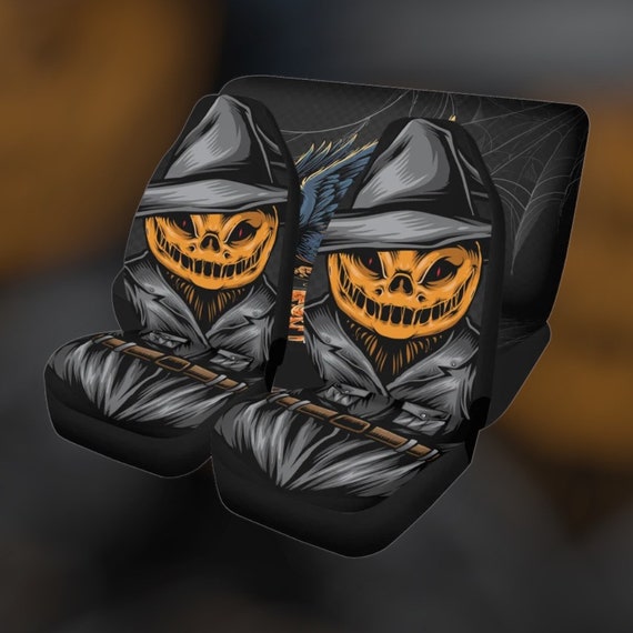 Halloween Spooky ghost Car Seat Cover Set, Kawaii Goth Car accessories, Witchy cute skull pumpkin car seat protector interior car decor